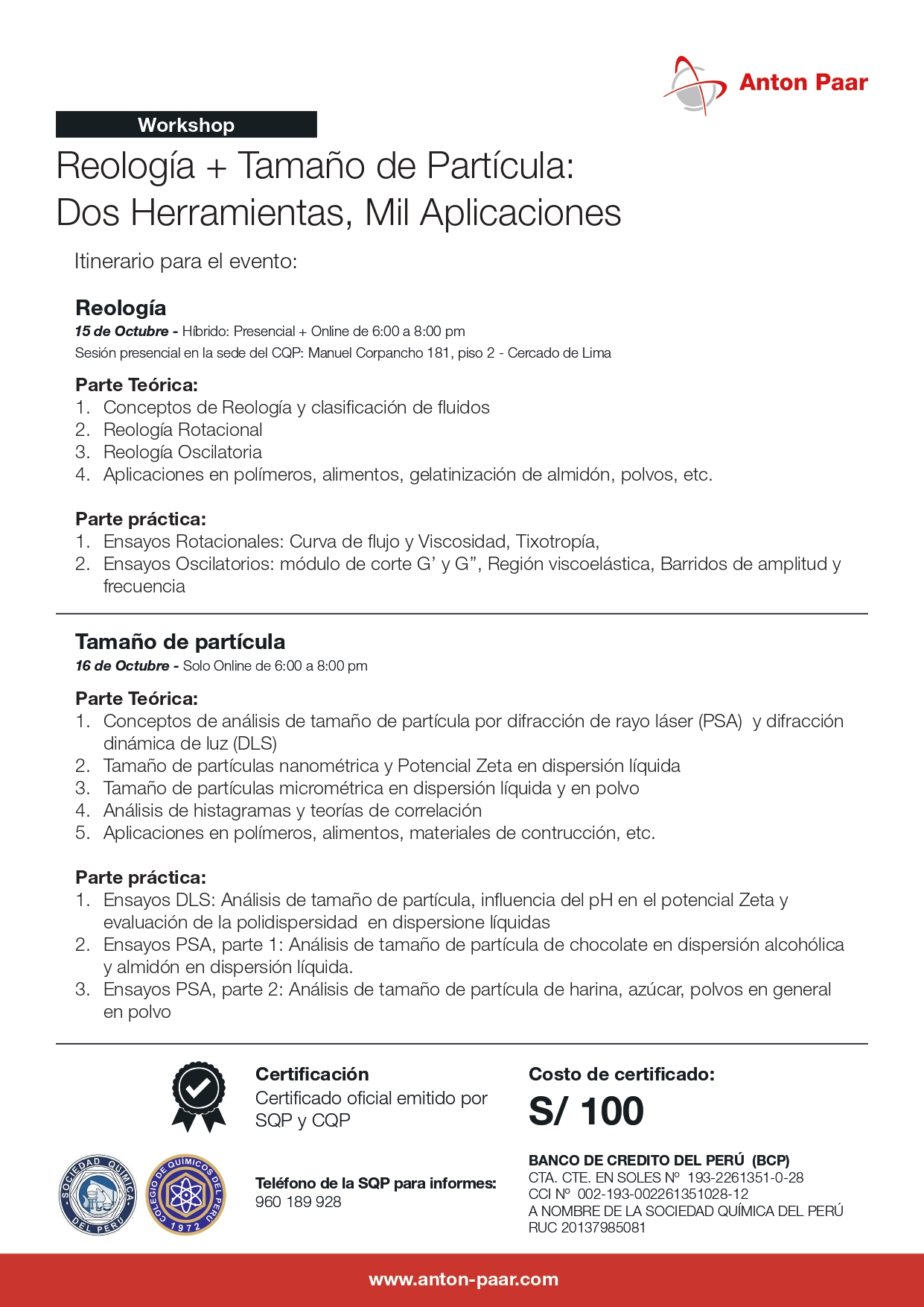 Se invita a participar del workshop en la semana de aniversario de la SQP, organizado por la ๐๐จ๐๐ข๐๐๐๐ ๐๐ฎ๐ขฬ๐ฆ๐ข๐๐ ๐๐๐ฅ ๐๐๐ซ๐ฎฬ (๐๐๐), el ๐๐จ๐ฅ๐๐ ๐ข๐จ ๐๐ ๐๐ฎ๐ขฬ๐ฆ๐ข๐๐จ๐ฌ ๐๐๐ฅ ๐๐๐ซ๐ฎฬ (๐๐๐) y la empresa ๐๐ง๐ญ๐จ๐ง ๐๐๐๐ซ.